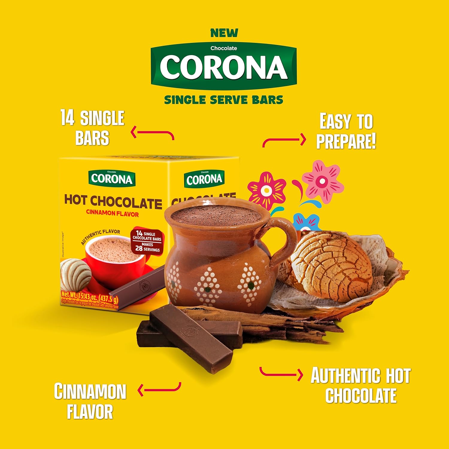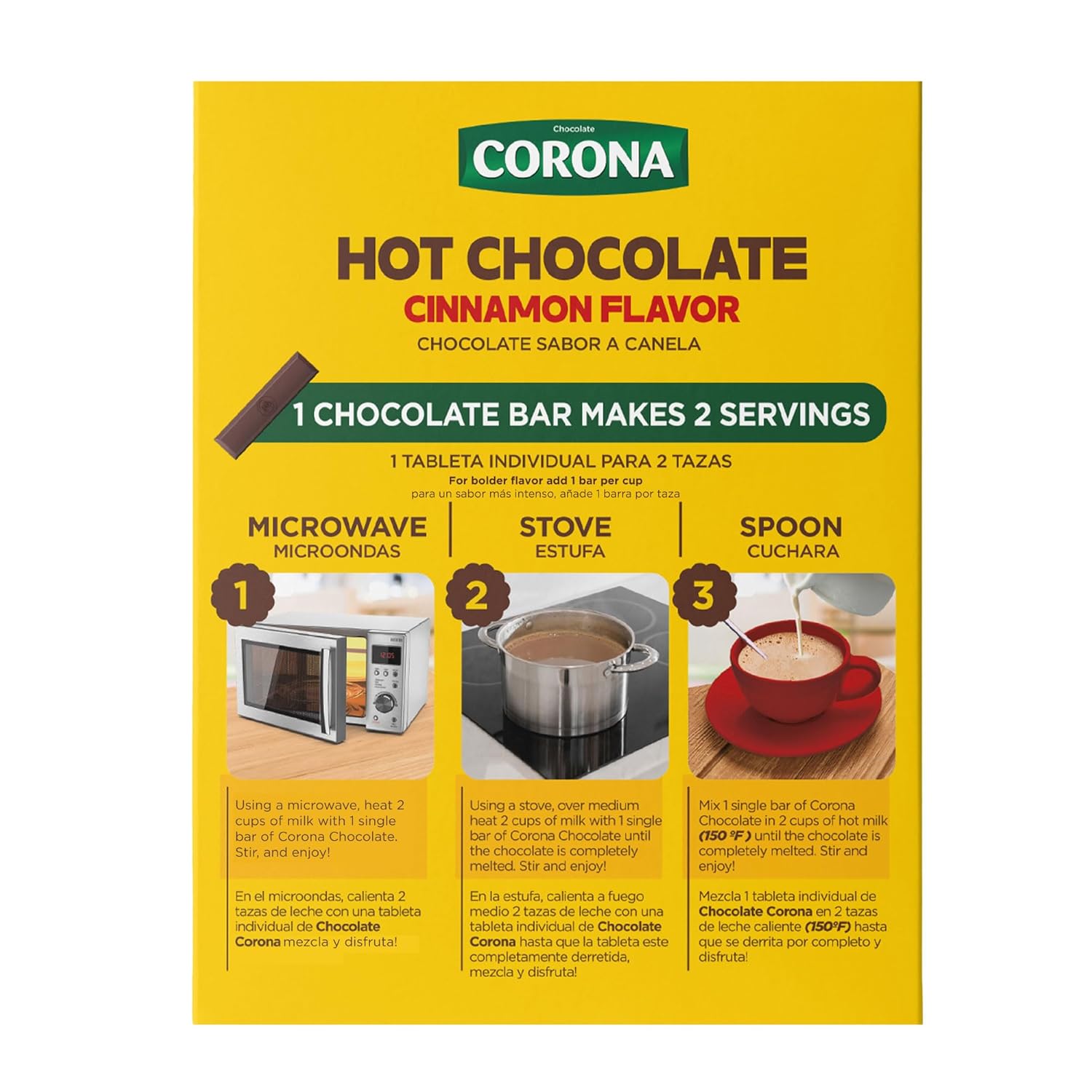 Enjoy a warm and comforting cup of traditional Colombian hot chocolate with Corona Cinnamon Hot Chocolate Single Serve Bars. This package includes 14 individually wrapped bars, totaling 15.43 oz (437 g) of rich chocolate infused with a subtle cinnamon flavor. Simply dissolve one bar in hot milk or water to create a smooth, flavorful beverage perfect for breakfast or cozy evenings. A classic Colombian favorite, Corona chocolate delivers authentic taste and aroma in every cup.
