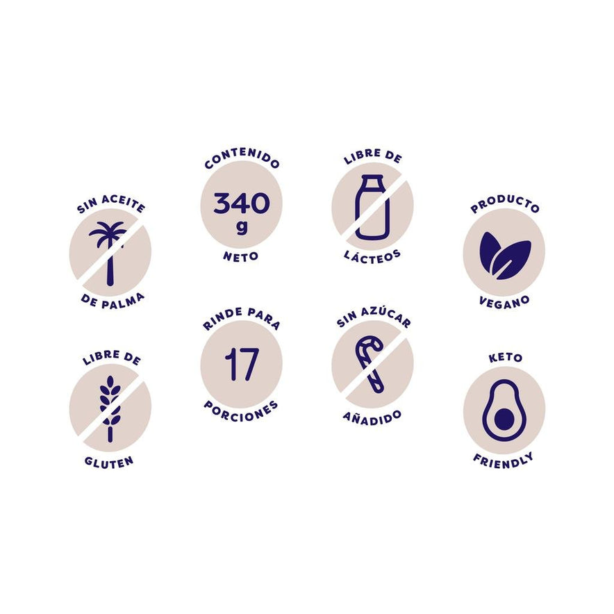 Contains 340 grams of product | Vegan product | Keto-friendly | Gluten-free | Dairy-free | Soy-free | No added sugars and no palm oil | Contains 80% nuts | Approximately 17 servings | Sweetened with stevia | Country of origin: Colombia.